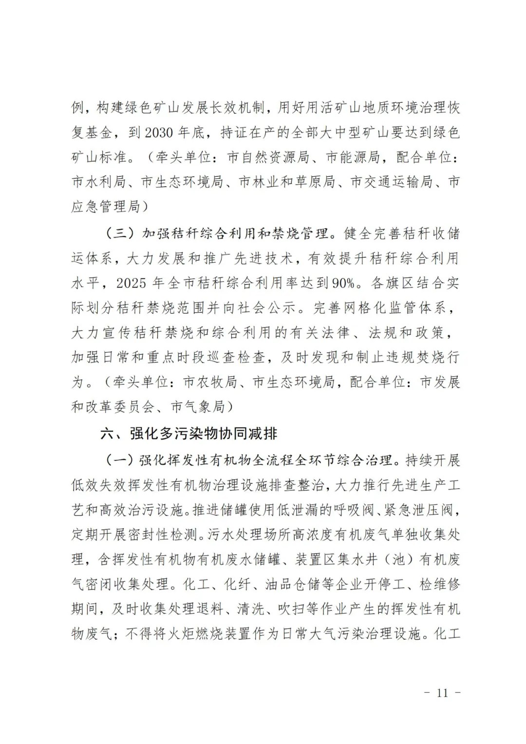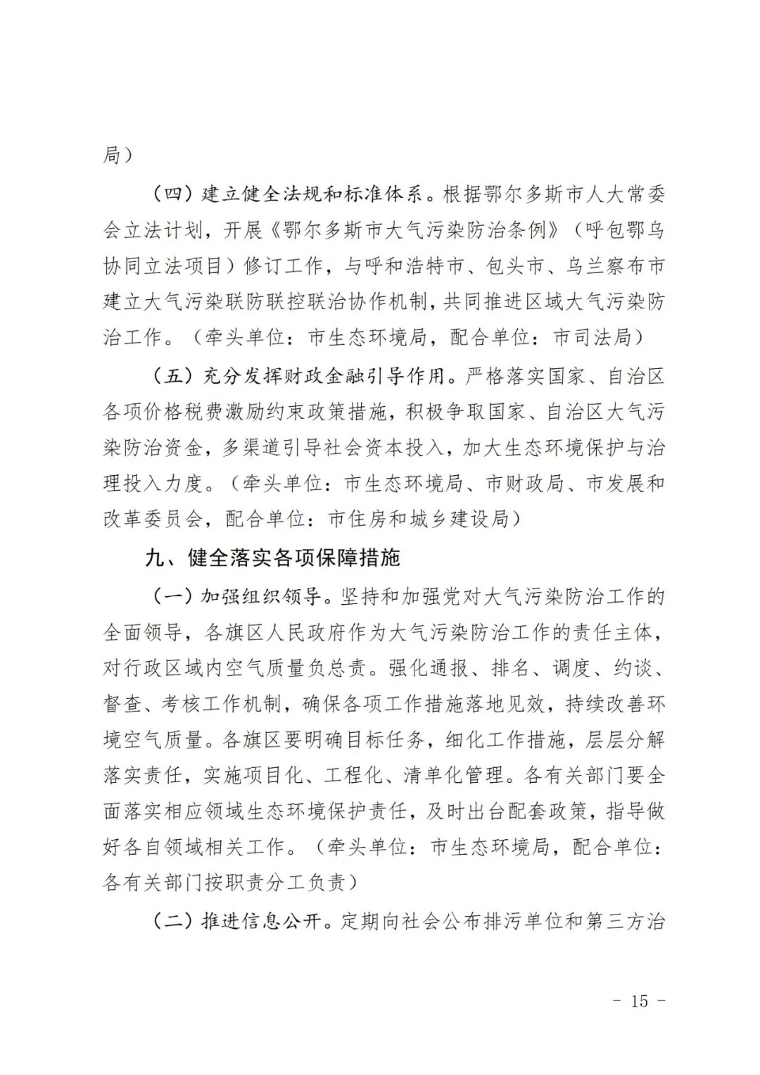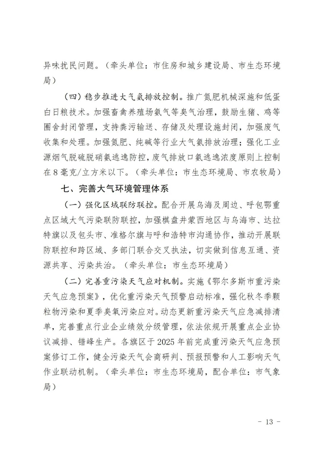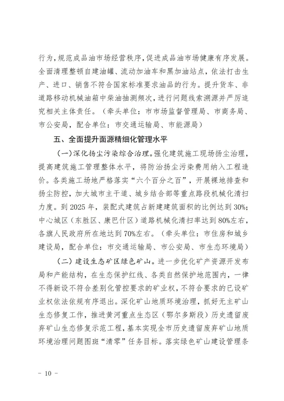 方案强调,持续推进清洁取暖改造。积极争取北方地区冬季清洁供暖项目试点城市,因地制宜、积极稳妥推进清洁取暖改造,确保群众安全温暖过冬。全面实施城中村、城边村燃煤散烧综合治理三年攻坚行动,到2025年底前,达拉特旗、准格尔旗、棋盘井蒙西地区等重点区域城中村、城乡结合部散煤基本清零;东胜区、康巴什区、伊金霍洛旗、乌审旗、杭锦旗、鄂托克旗、鄂托克前旗分三年完成改造任务,其中2025年前完成总任务量的30%以上、2026年前完成总任务量的60%以上、2027年前完成全部任务。积极争取中央、自治区大气污染防治专项资金,稳步推进达拉特旗、伊金霍洛旗、乌审旗、杭锦旗、鄂托克旗、鄂托克前旗农村牧区清洁取暖项目。各旗区要依法将整体完成清洁取暖改造的地区划定为高污染燃料禁燃区,防止散煤复烧。对暂未实施清洁取暖的地区,强化商品煤质量监督与管理。