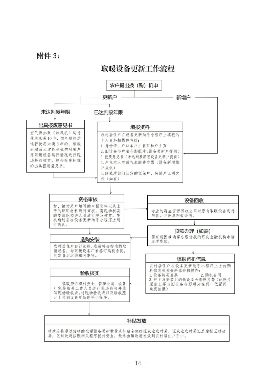 征求意见稿指出,设备更新的对象分为设备更新户和村内新增户。设备更新户为原享受过政府补贴的农村居住户,清洁取暖设备运行使用满10年(燃气壁挂炉判废年限为8年,以企业产品明示为准)可以申请享受清洁取暖设备更新政策补贴;虽没有达到上述年限,但经第三方专业检验检测机构出具报废意见书认定具备报废标准的,同样也可以申请享受清洁取暖设备更新政策补贴。在已经完成整村“煤改清洁能源”改造的村庄中,拥有住房且户主(户内家庭成员)未享受过清洁能源改造政策补贴的新增户,纳入本次补贴范围。